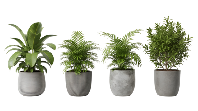 Tropical House Trees in Modern Pots Against a Transparent Background Generative AI