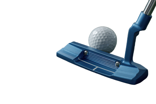 Elegant blonde golfer in mid-swing, isolated transparent background