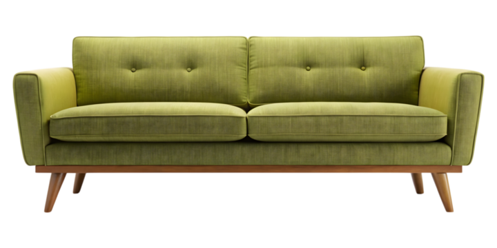 Cozy Green Sofa: A contemporary green sofa, presented on a blank canvas. It's a versatile piece of furniture, perfect for modern living spaces and design concepts.
