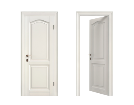 Two white panel doors, one closed and one open, cut out