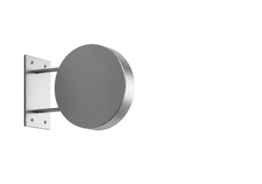 Isolated modern round signage mock up with metal mount for shop, store or cafe wall