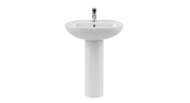 Isolated pedestal sink with faucet for bathroom or restroom, home improvement fixture