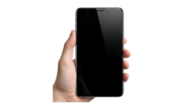 Sleek modern smartphone with a dark screen isolated on transparent background