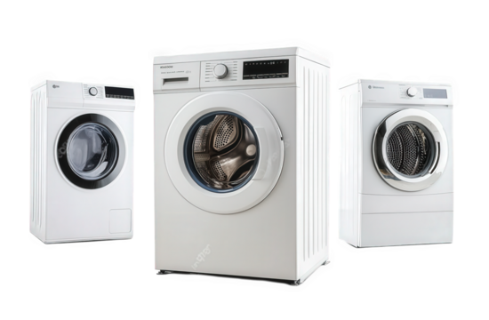 Sleek silver washing machine isolated on transparent background, a modern and efficient appliance for any home laundry room, clean and ready to use
