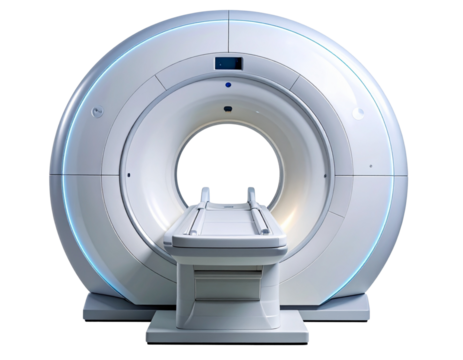 Modern MRI Machine Front View with Open Bore, Isolated on Transparent Background