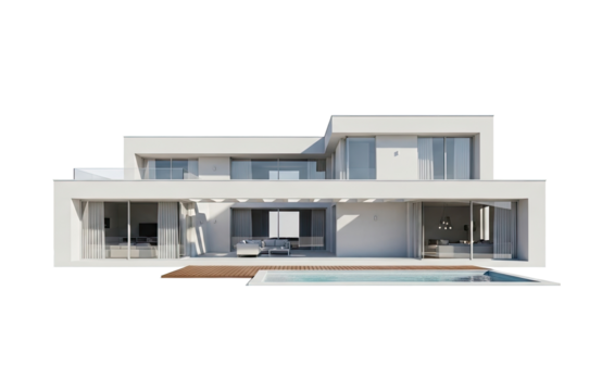Modern glass building on transparent background architecture