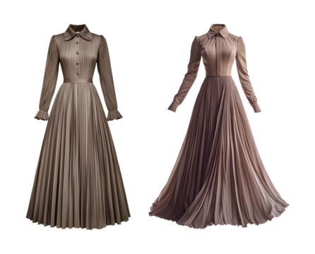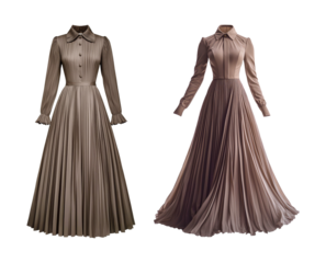 Elegant Vintage Long Sleeve Pleated Dresses in Neutral Tones