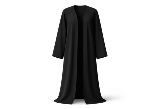 Black flowing long open cardigan isolated on transparent background, fashion.