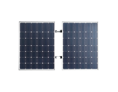 A single photovoltaic solar panel object angled slightly upward for energy generation design on transparent background