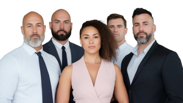 Group of business leaders in formal attire standing confidently and looking professional on transparent background
