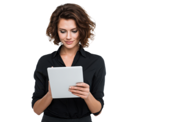 Smiling Businesswoman Standing with Tablet – No Background