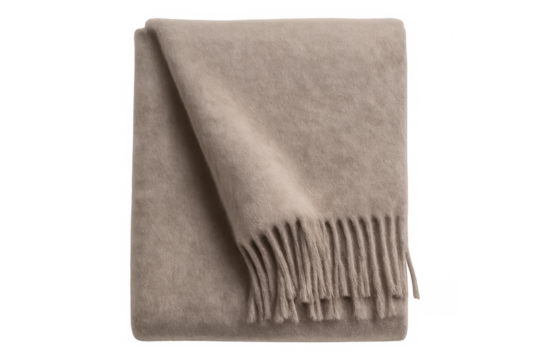 Soft beige fringed blanket draped elegantly, highlighting textural warmth and inviting home comfort