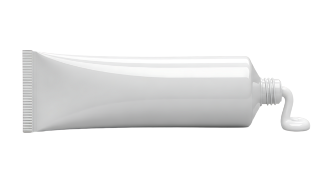 Hand holding a white cosmetic cream tube isolated on transparent background