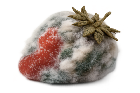 Isolated Transparent PNG of Decaying Moldy Strawberry with Rotting Fruit