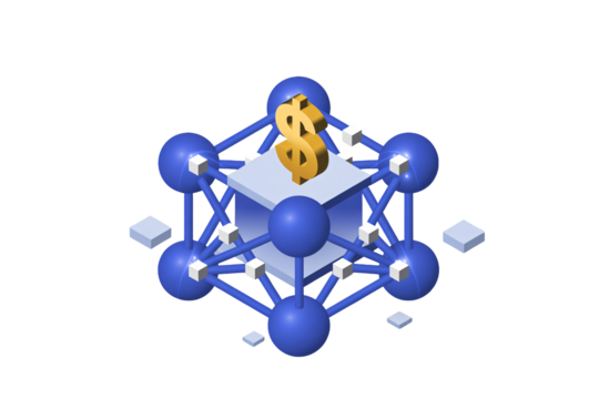 3D rendered dollar sign in blue molecular structure with glowing nodes and futuristic lighting for financial technology