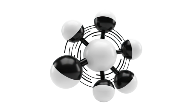 Digital illustration of molecular structures on transparent background