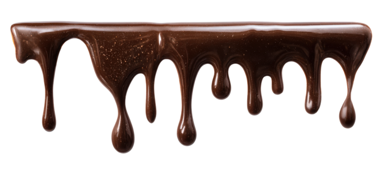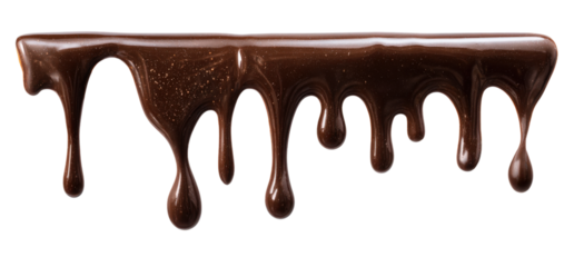 Glossy chocolate drips, delicious melted dessert sauce flowing on transparent background