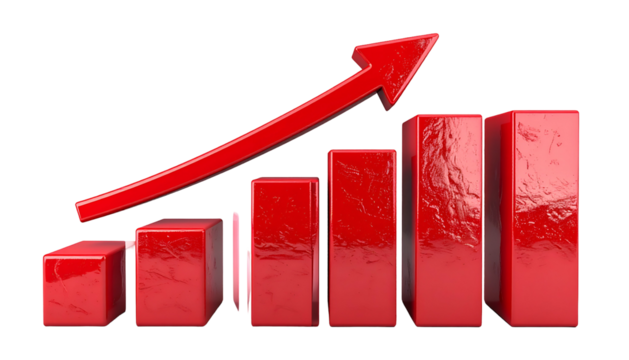 Red directional arrows increasing on transparent background