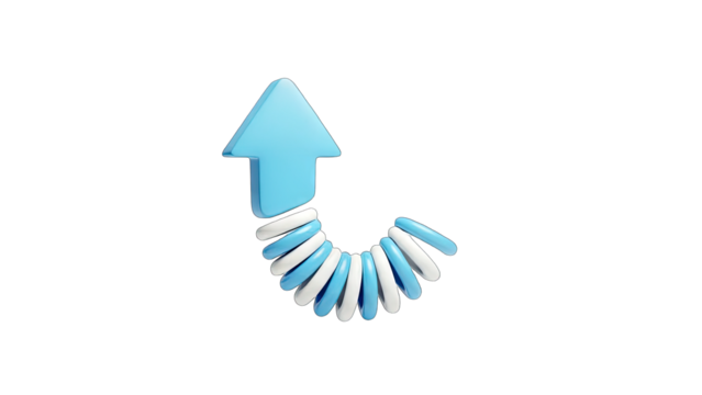 Shiny red arrow curving upwards on a transparent background, symbolizing growth, progress, and positive momentum