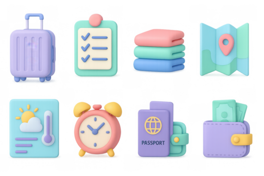 Business and productivity icons including briefcase calendar graph and clock isolated on a transparent background
