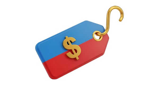 3D Fishing hook piercing a green dollar bill on transparent background