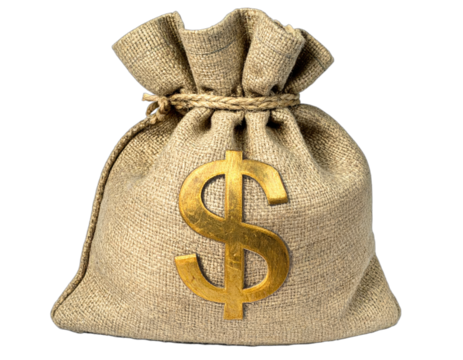A burlap sack with a golden dollar sign, representing wealth and finance