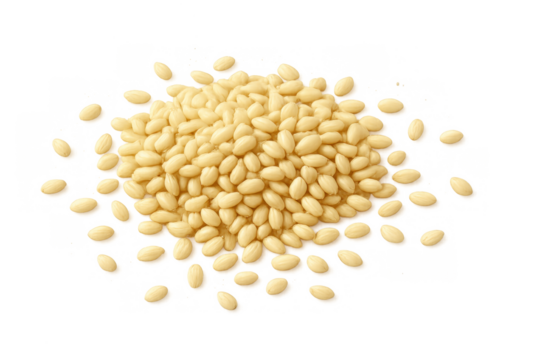 Sesame seeds pile with falling grains for baking, cooking, healthy food, and snack concepts, transparent background