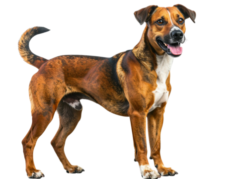 Happy mixed breed dog face with tongue out isolated on transparent background