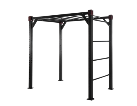Modern metal monkey bar structure for outdoor fitness and play isolated on transparent background