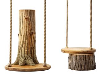 Wooden playground structure with slides and climbing features isolated on transparent background