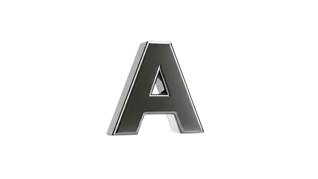 3D Silver Letter A on transparent background