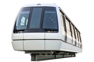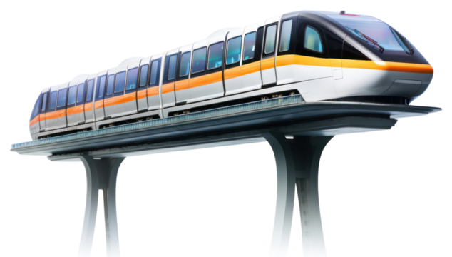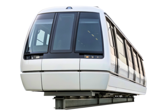 Modern monorail train isolated on transparent background, futuristic public transportation vehicle for urban transit and city travel