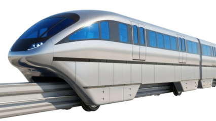 High-speed maglev train on track with transparent background