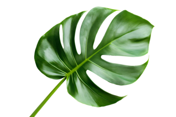 Lush green monstera leaf on transparent background isolated