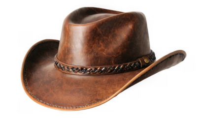 Classic Brown Leather Cowboy Hat with Wide Brim, Pointed Crown, and Textured Finish