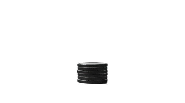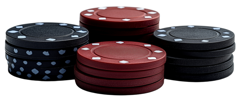 Stack of black poker chips on transparent background forming a podium