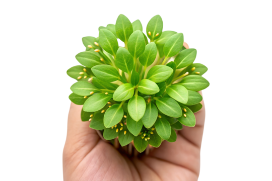 Close up shot of someone holding a green aquatic plant in hand