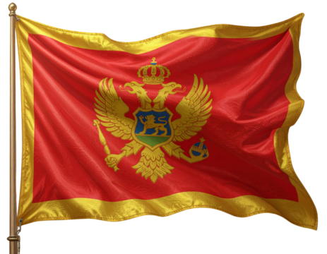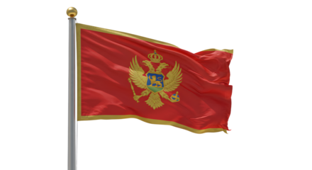 Flag of montenegro with no background, transparent png, flag on a flag pole waving in the wind, national symbol of montenegro, country in europe, picture of a flag
