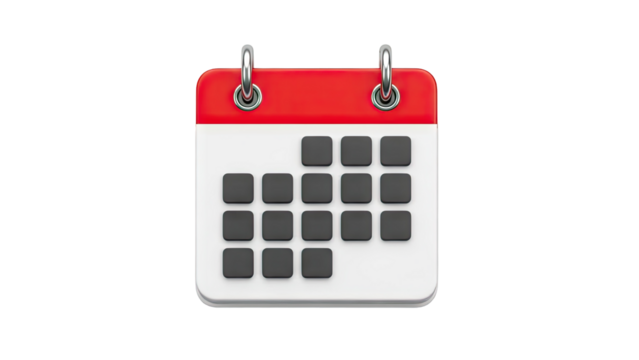 Isolated White Calendar with Blue Accents and Gold Clock Icon