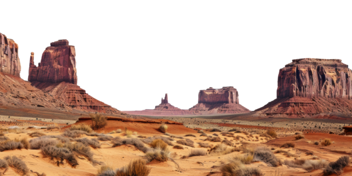 Red rock formations in monument valley national park, arizona, cut out - stock png.