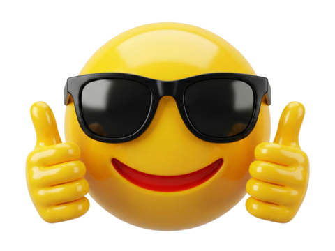 Cool Emoji with Sunglasses and Thumbs Up, Yellow Smiley Face, Positive Vibes