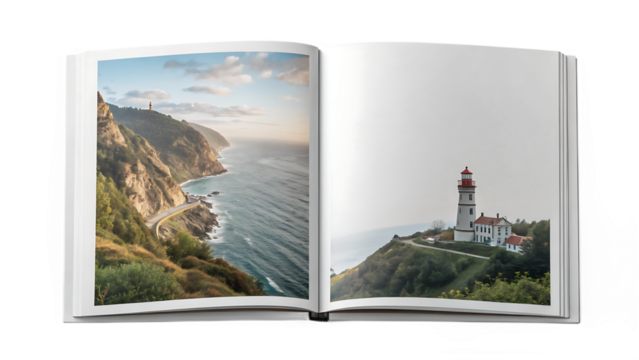 Scenic Coastal Seashore with Lighthouse – Dramatic Rocky Cliffs and Ocean Waves