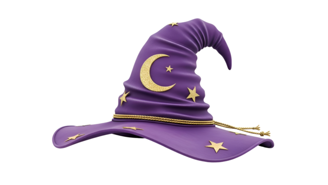 Purple witch hat with moon and stars
