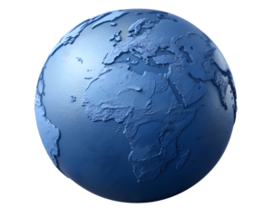 3d icon of a blue globe showing africa and europe, isolated on transparent background