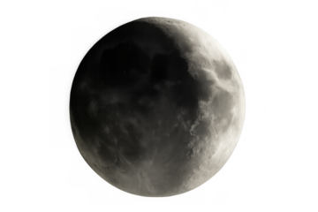 Photorealistic full moon rendering, showcasing intricate lunar surface details against transparent background, ideal for cosmic-themed graphic designs