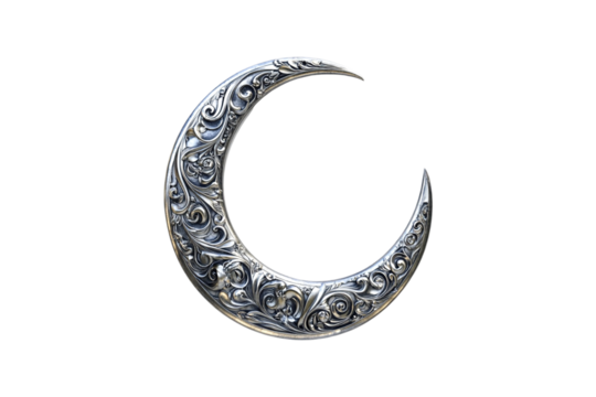 Ornate Silver Crescent Moon Exquisite Detailing Elegant Design
