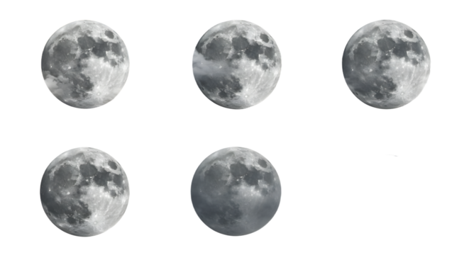 Series of six full moons showcasing different phases against a dark sky, perfect for lunar-themed projects