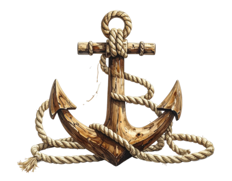 Metallic Blue Anchor Wrapped with Rope on White Background