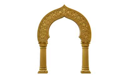 Intricate Golden Archway with Moorish Carvings on Transparent Background