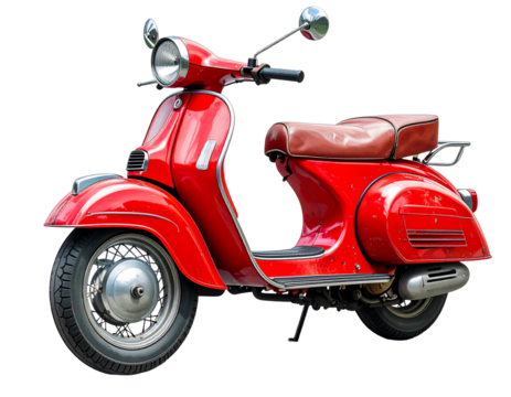 Red retro vintage scooter isolated on white transparent background